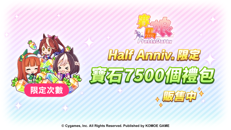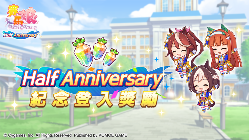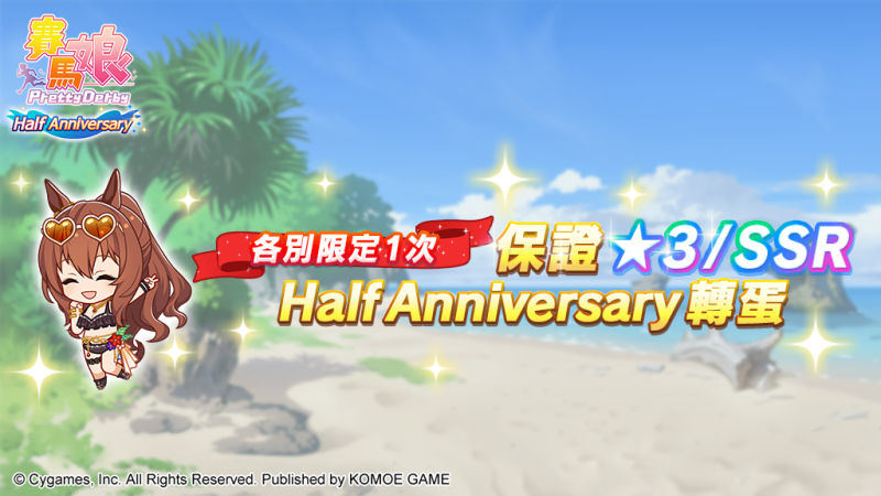 由日本Cygames 開發、小萌科技(KOMOE TECHNOLOGY LIMITED)代理的超人氣養成手機遊戲《賽馬娘Pretty Derby》繁體中文版,於12月27日迎來正式營運屆滿半年,半週年系列慶祝活動「Half Anniversary活動第2彈」正同步開放中,除了可於本活動獲得演唱會活動「WINNING DREAM STAGE」的連動歌曲與SSR支援卡片外,還將可獲得最多6000個寶石! 2023年1月2日維護結束後也將公開培育劇本「青春盃~閃耀吧,隊伍情誼~」,敬請期待!
