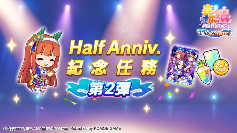 另外,半週年系列慶祝活動「Half Anniversary紀念任務第2彈」也同步開跑!完成期間限定任務可獲得「寶石500個」及3張SSR支援卡片「[WINNING DREAM]無聲鈴鹿」等報酬!