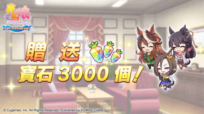 在活動「Half Anniversary紀念寶石禮物」中,還會加碼贈送「寶石3000個」,各位訓練員可至主頁面的「禮物盒」領取!