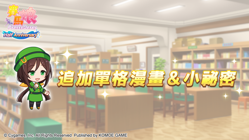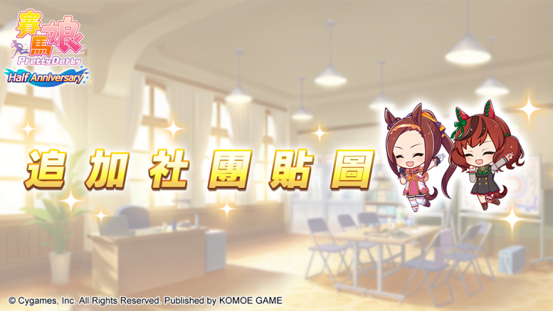 同時,讀取中出現的各賽馬娘的單格漫畫與小祕密各24種,以及能夠在社團聊天室中使用的10種貼圖,都將在調整部分設計後同步追加!