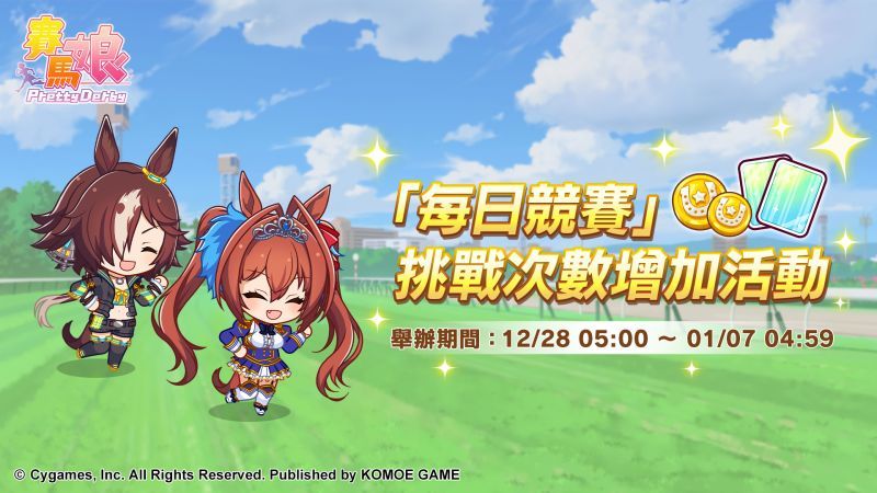 更多精彩活動內容與詳細資訊將陸續釋出,歡迎追蹤《賽馬娘Pretty Derby》繁體中文版官方粉絲專頁,時刻掌握最新消息!