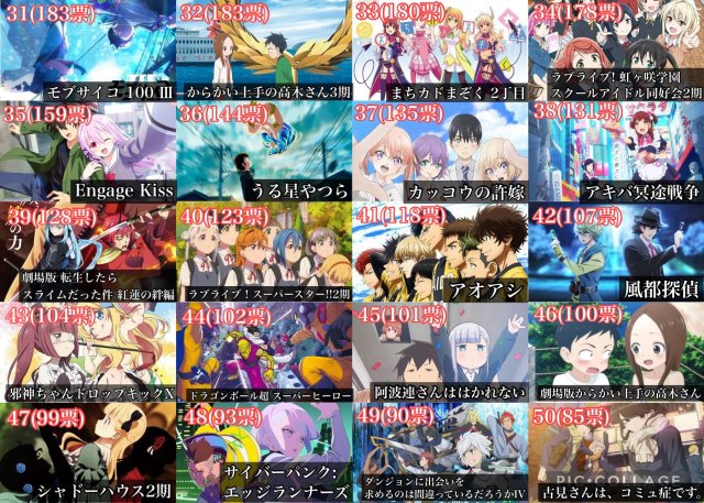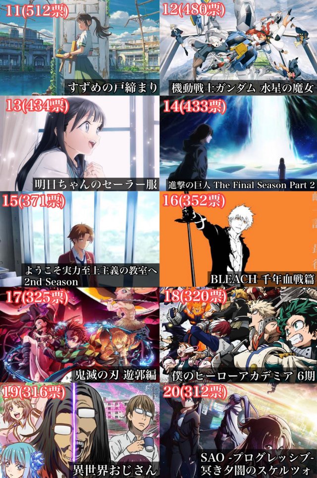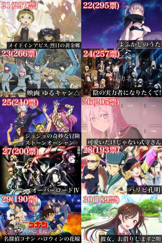 雖然說並不是用嚴謹的方式排名,而只是推特網友間的投票,但由於とあるん本身是相當勤於更新動畫消息的帳號,有大量動畫愛好者關注他,因此這個調查結果至少也看得出「推特用戶們大致的喜好傾向」。