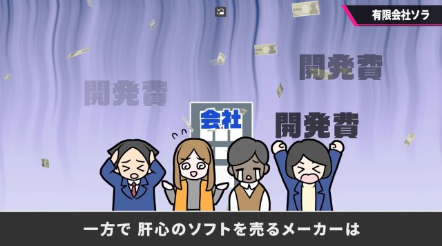但櫻井政博也提到,這是在大公司內部開發時才會有的狀況。如果是普通外包公司的話,基本上每個月會提供一定金額的開發費給外包公司,理由是這樣在稅務上會對遊戲開發公司比較有利,這筆金額也必須維持外包公司的員工。