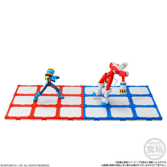 「SMP KIT MAKES POSE 洛克人EXE 01」共收錄洛克人、蘿露、氣力人、火焰人等四位角色,每位角色的套件中將附上替換表情、替換武裝、方格地台以及小矮兵、加農彈等敵人,像是洛克人就能替換兩種表情以及洛克破壞砲、夢幻劍、加農砲等武裝,湊滿紅、藍色方格各 9 個更能重現遊戲中敵我方各 3X3 的棋盤式戰場!