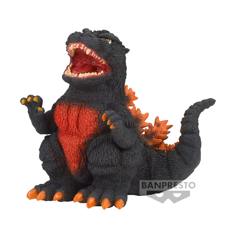 匯集世界上各種怪獸的坐姿軟膠模型系列「鎮座獸」全新登場,首彈推出怪獸之王──哥吉拉!採用 1995 年平成哥吉拉系列終點《哥吉拉vs戴斯特洛伊亞》劇中的霸氣造型,分別有 A 款「鎮座獸 哥吉拉 1995」與 B 款「鎮座獸 紅蓮哥吉拉 1995」,尺寸約高 12 公分,在 Q 版的比例之中還原仰天咆嘯的兇惡頭部、粗壯雙腿、巨大腳爪和細膩的體表紋路;令人印象深刻的紅蓮哥吉拉更是施以體表高溫發出紅光的塗裝,再次感受哥吉拉極具毀滅性姿態!