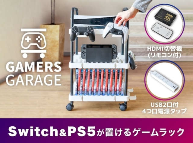 副廠品牌「THANKO」推出直接叫做「玩家推車」(ゲーマーズガレージ)的商品,主打的就是可以一次整合常用的主機、手把、周邊配件等等,除了能夠在家裡自由移動之外,這個推車也附贈了延長線和HDMI切換器,搭配起來也可以讓他成為電視旁邊方便的「主機塔」,不用再把主機從推車上移下來。