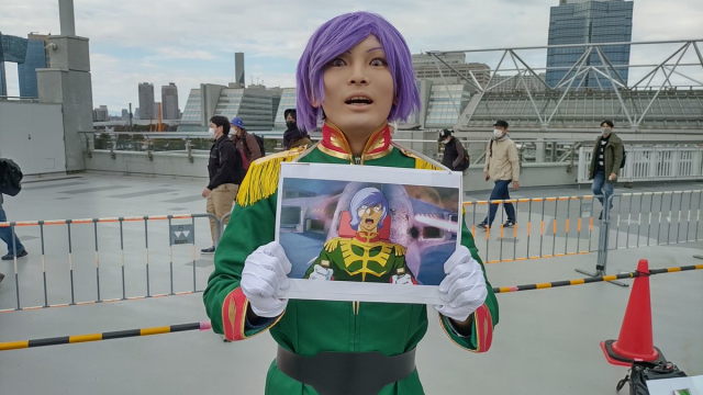 而這次真田悠除了經典足球一幕外,也出了《機動戰士鋼彈》的卡爾瑪·薩比,這也是他非常喜歡的角色之一,更是想嘗試還原卡爾瑪那經典張嘴驚訝的一幕 XD。