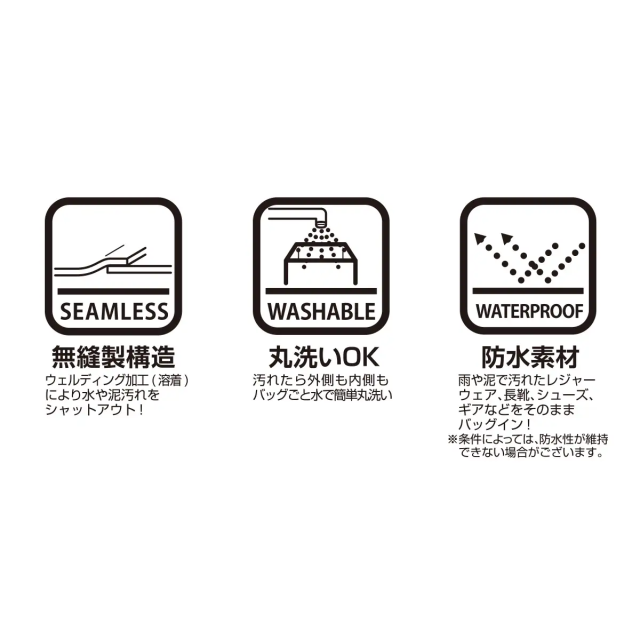 採用無接縫製造,能夠完美的隔絕雨水侵害,下雨天背著也不用擔心包包裡的東西濕掉;包包上若有污漬也可以方便的用水清洗。背包背帶採可拆卸的設計,不使用背帶的時候也可以使用手提。