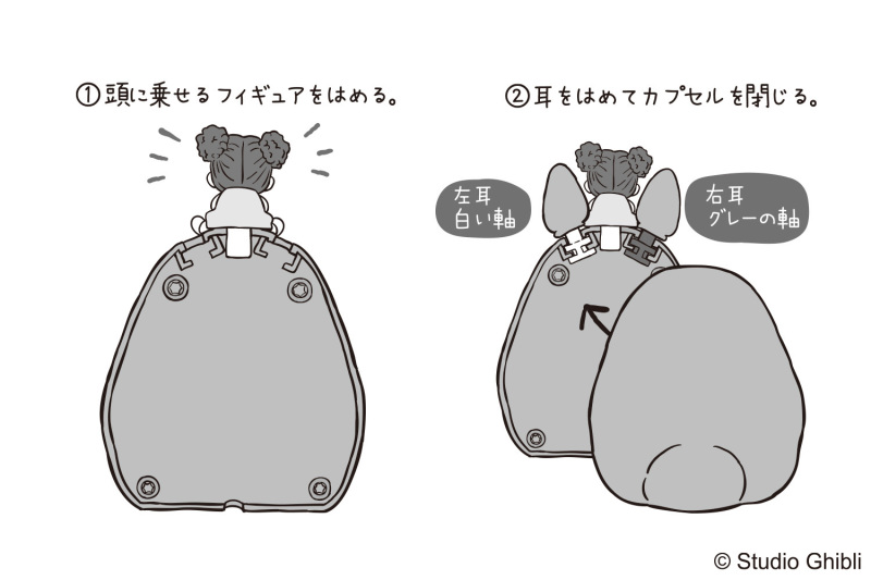 「龍貓出來吧」轉蛋,以無轉蛋殼的環保形式,將龍貓造型結合植絨外殼,呈現出尺寸約高 8 公分的大份量~內部裝有龍貓的耳朵以及小梅、青蛙與煤炭精靈、中龍貓、小龍貓四種款式的迷你模型,可以組裝在龍貓的頭上,變成坐在大龍貓頭頂上的超可愛造型!每款龍貓的表情也有些需的不同,能夠互相替換組裝~在橡子共和國店鋪的轉蛋機外觀設計為樹木造型,轉的時候就有如龍貓從樹林中滾出來~!