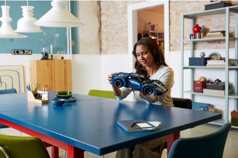 本作一共有 1466 片零件,根據樂高官網表示這次的「2022 Ford GT」是以 1/12 的比例打造,組裝完成之後長度來到 39 公分、寬度也有 18 公分,整體是以深藍色為主調並點綴了白色條紋,除了再現其流線外觀與車體細節之外,還搭載了前軸轉向、獨立懸吊、活塞可實際運作的 V6 引擎、可開啟的引擎蓋、可打開的車門,與能夠調整的擾流尾翼......等把玩功能,車頭的大燈零件也非常漂亮!推薦給喜歡樂高科技賽車的玩具人啦。