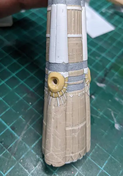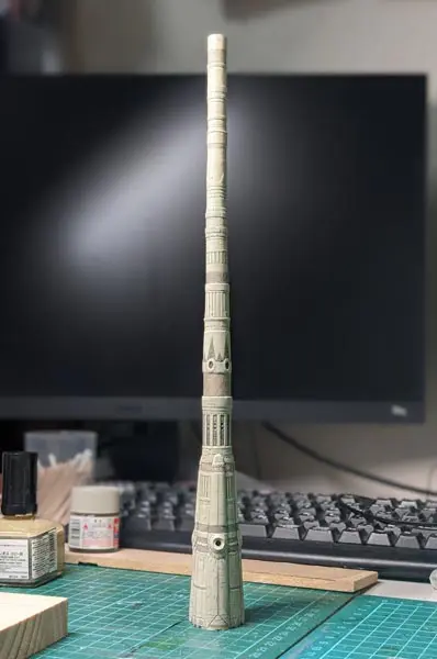 為了製作最關鍵的巴別塔地下城出入口,TOmaTO 採用了塑膠管為中心來打造。填充黏土打造出粗略的形狀,再以條紋雕刻、薄塑料板來重現表面細節。放棄原本可行的 3D 列印,希望透過手工製作出更完美的作品。