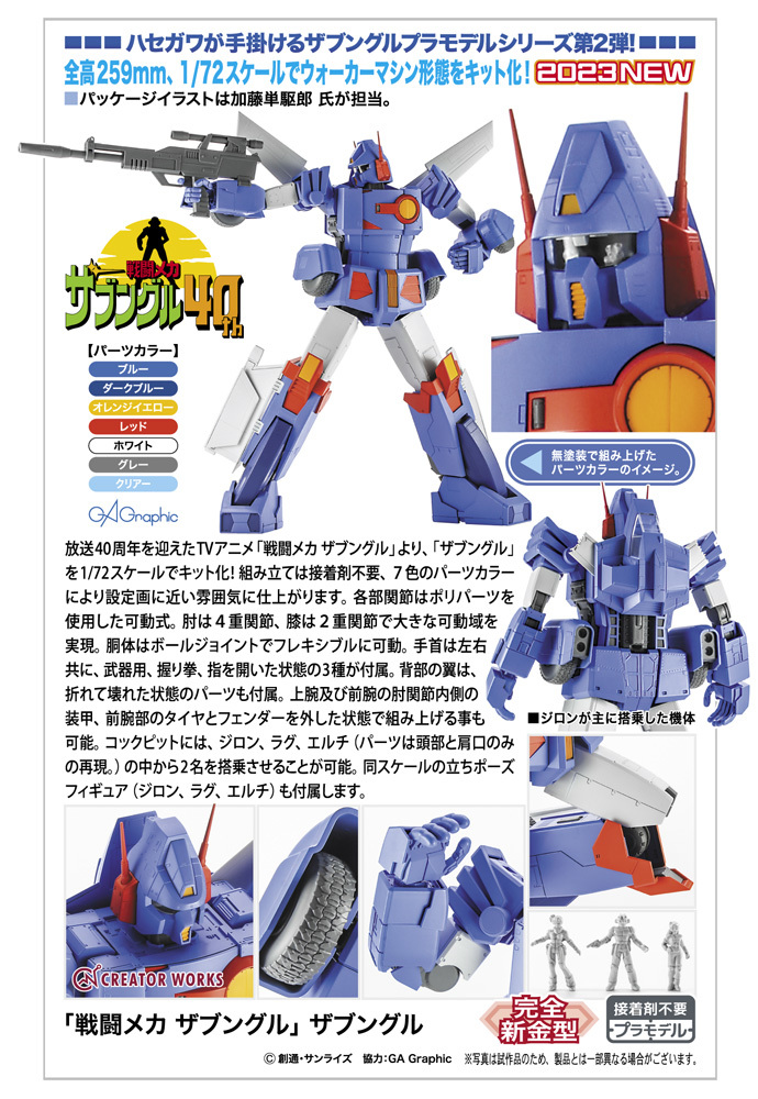 推出戰鬥機、戰艦、賽車等擬真類型商品的日本廠商長谷川HASEGAWA,將於2023年3月推出經典機器人動畫作品《戰鬥裝甲Xabungle》中的主角機器人「薩奔格爾」(ザブングル)的1/72比例組裝模型!