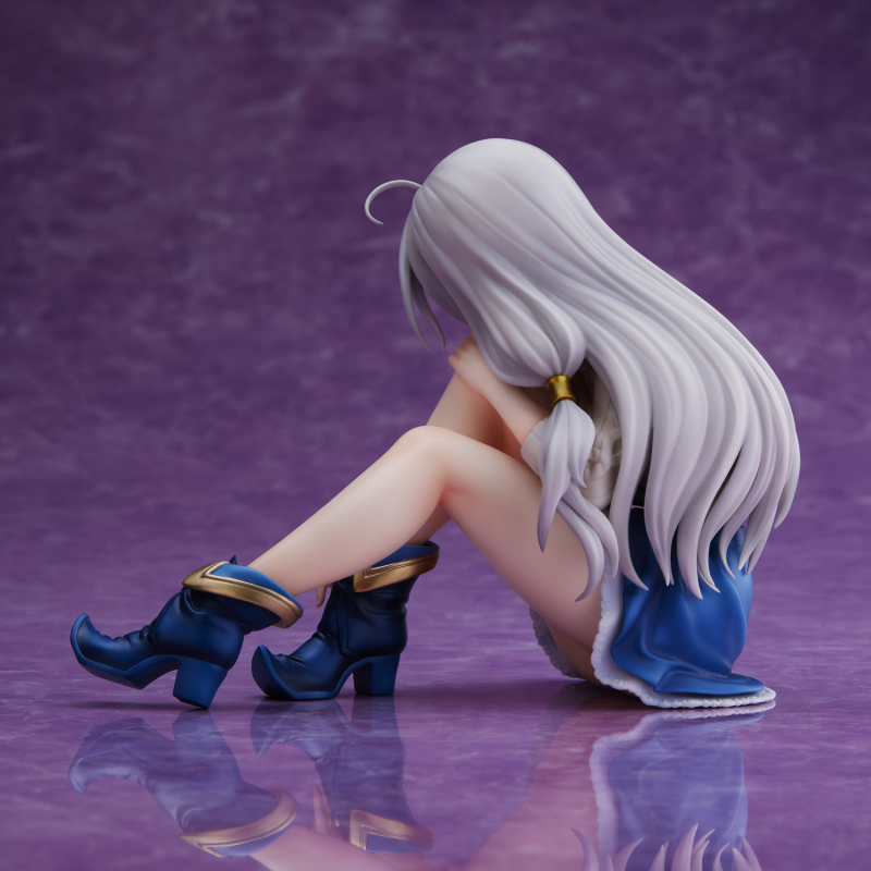 這款由UNION CREATIVE所推出的伊蕾娜之PVC立體人形商品,全高約12公分,以伊蕾娜的坐姿為外型為參考基準進行實體化。伊蕾娜的上半身穿著與灰色髮相近的針織衫,下半身則是藍色短裙,搭配同樣是藍色的鞋子。頭髮、表情、手腕的環、以及腿部線條和鞋子的形狀與皺褶等等細部地方,都還原地相當精緻且完美。而且還附屬特殊的布織台座,整體品質相當出眾。