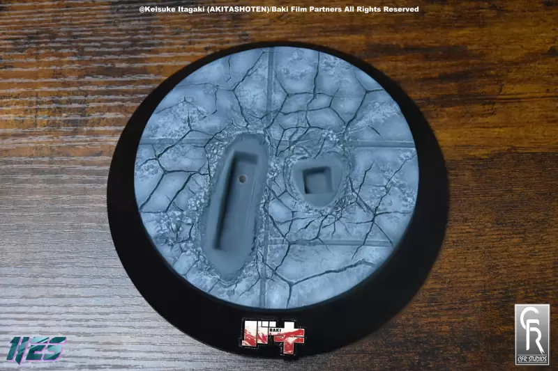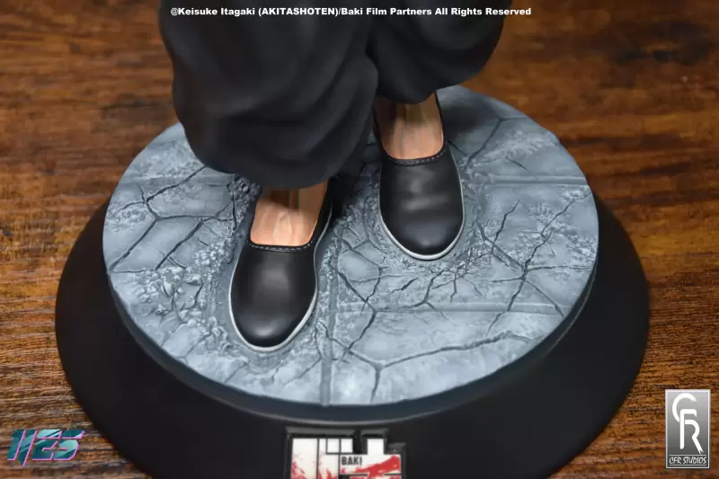 限量版雕像配有主題底座,上面有破碎的混凝土地板和《刃牙》的標誌。
