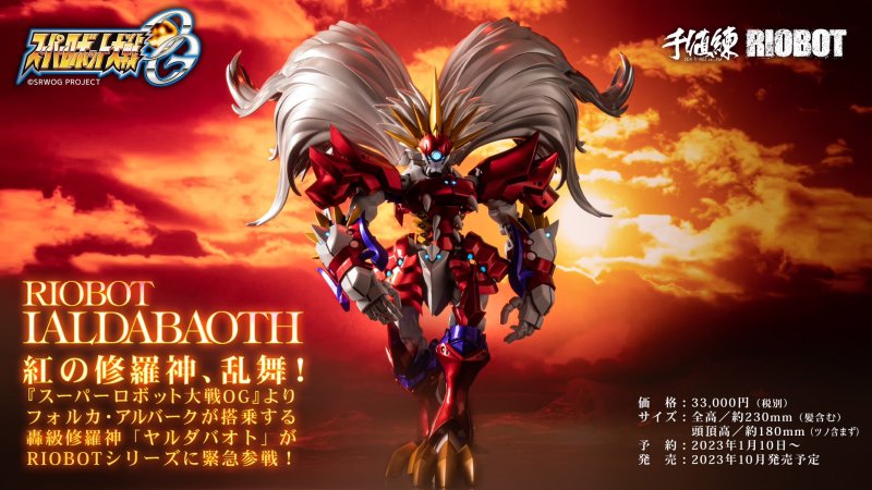 由日本模型商千值練所推出的人氣合金可動系列『RIOBOT』昨日晚間發表了出自《超級機器人大戰OG》的最新商品「修羅神 IALDABAOTH」預計於 2023 年 10 月發售的消息。此外宿敵機「轟擊修羅神 BYLEFOL」也預計於官方商店 SEN-TI-NEL STORE 限定販售。