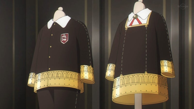 伊甸學園在作品中是安妮亞就讀的學校,學校內的學生都是財閥高官的兒女,也是為了「黃昏」佛傑能夠順利完成西國奉命的間諜情報調查。伊甸學園的制服也秉持著優雅的設計,金色搭配黑色的學院風格也展現出貴族才有的風範。