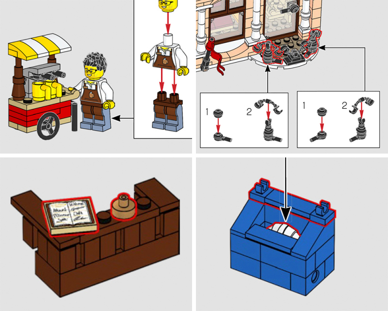 在 2014 年推出的「巴黎餐廳」在街景系列中常常被評論為是最棒的盒組之一,在國內、海外受到的評價也都相當不錯,主要就在於整體外觀相當優美,戶外座位的部分尤其讓人感受到巴黎風情,除了採用豐富的橄欖綠零件之外,白色的可頌、貝殼零件、鐵灰色羽毛勾勒的紋路也是一大特色。