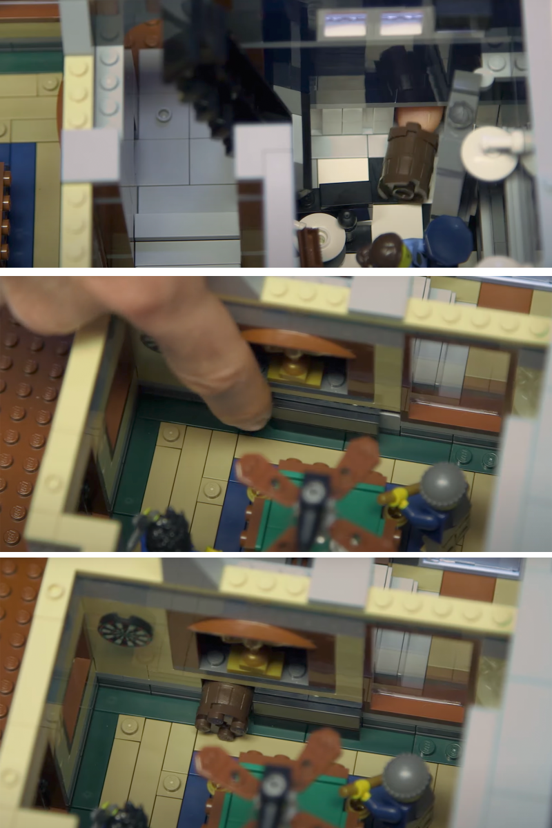 ▼ 在設計師 Jamie Berard 的設定中,樂高偵探社正處於所謂的「Prohibition Day」時期,不過並不是一般會聯想到的美國禁酒令,這回樂高人偶被禁止的是「吃糖果」,不過想當然,你越禁我越要吃!玩具人可以從一樓理髮廳、遊戲室的各個暗門把裝著糖果的木桶偷偷運送,超好玩。