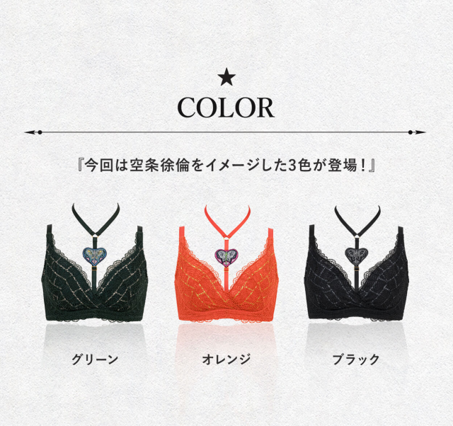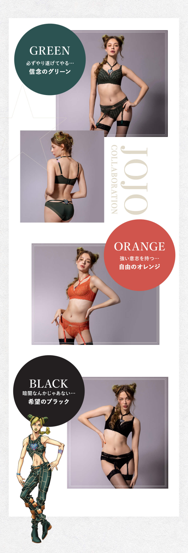 肩帶上也配置了喬斯達家族的星星標誌。透過 BRADELIS New York 自豪的內衣製作,無鋼圈的屬性能讓女性穿著更加舒適。