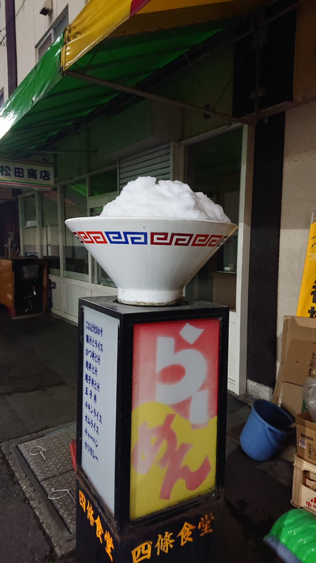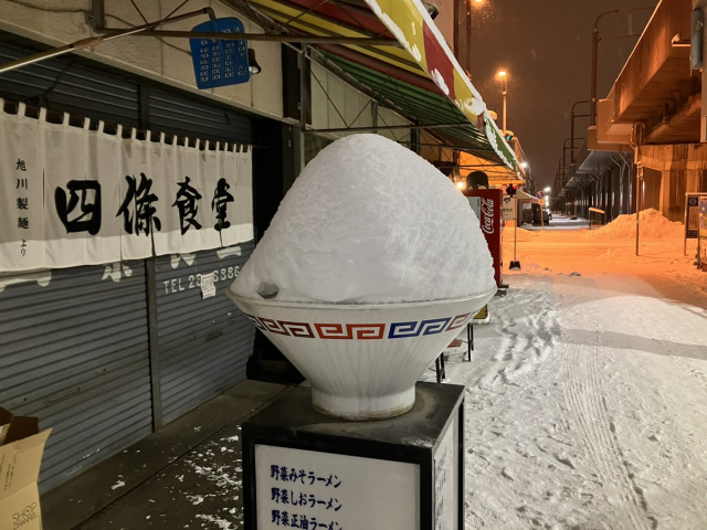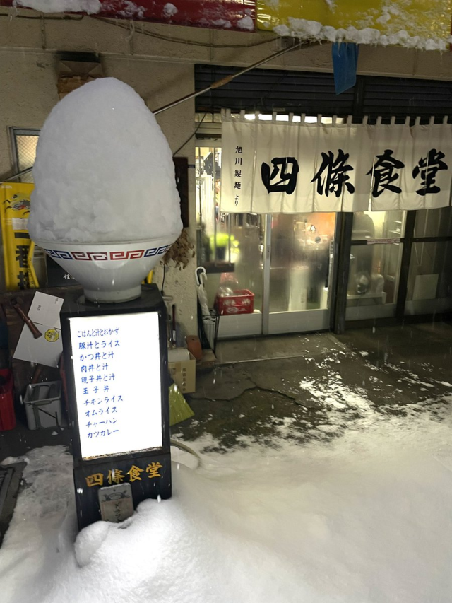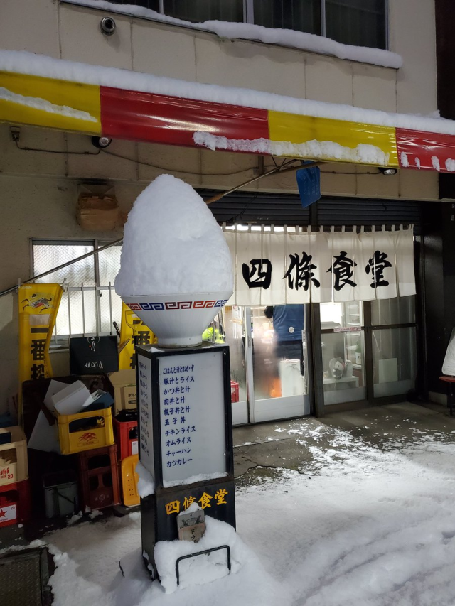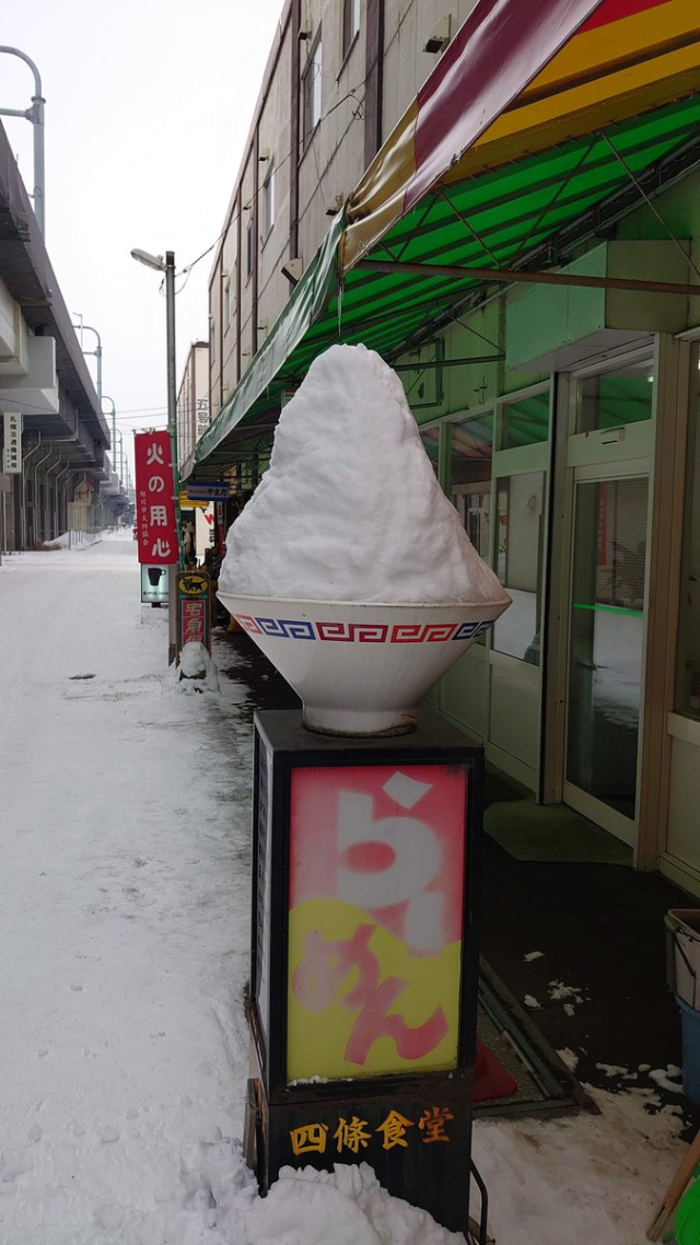 最近越來越多朋友前往日本旅遊,不論是東京、大阪還是北海道,都非常寒冷且有見到雪的機會。而最近北海道也飄起了大雪,在四條車站附近的「四條食堂」被網友意外發現店門口外擺設的碗公裝飾,因為大雪變成了「二郎系刨冰」,甚至讓不清楚的路過民眾以為這間店賣的是冰,成為網友討論話題。