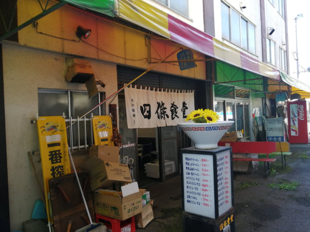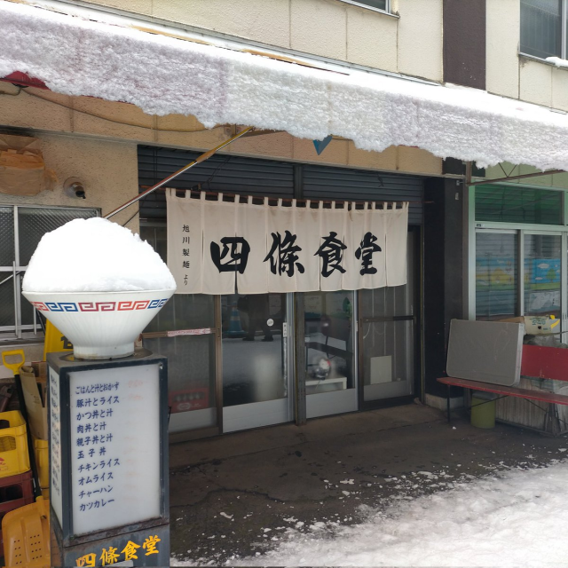 這家位於北海道旭川市的「四條食堂」 非常有名,以美味的丼飯與拉麵吸引不少觀光客前來,當地民眾也很喜愛。而平常外投就擺著一個拉麵碗公,其實不少日式料理店鋪都會有類似的擺設。