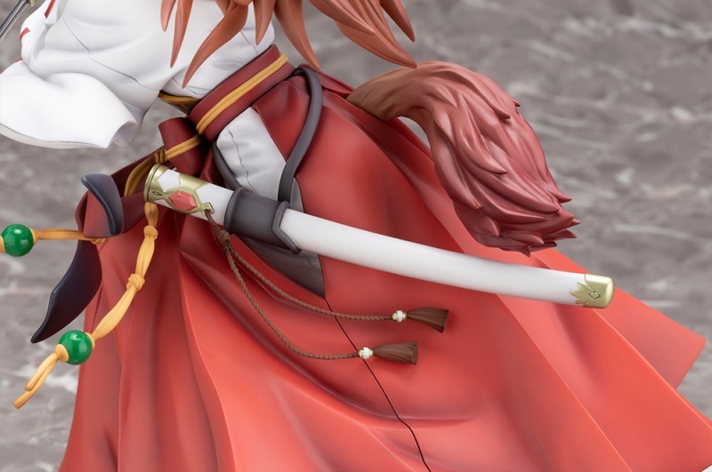 這款壽屋推出的「刀之勇者 拉芙塔莉雅」,是將盾之勇者成名錄的第二季動畫中,拉芙塔莉雅穿上巫女裝扮拿起日本刀與敵人作戰的樣貌給實體化的商品,雖然動畫劇情與原作小說有諸多差異,但是拉芙塔莉雅的這個造型相當搶眼。她拿起刀擺出架勢,隨之飄動的長髮,身著傳統巫女裝束,與她平日感覺有著不同感受,細部的地方都一一還原,腰間的刀鞘、繩結、腳下的拖鞋等等,是一款有別於過往形象的商品。