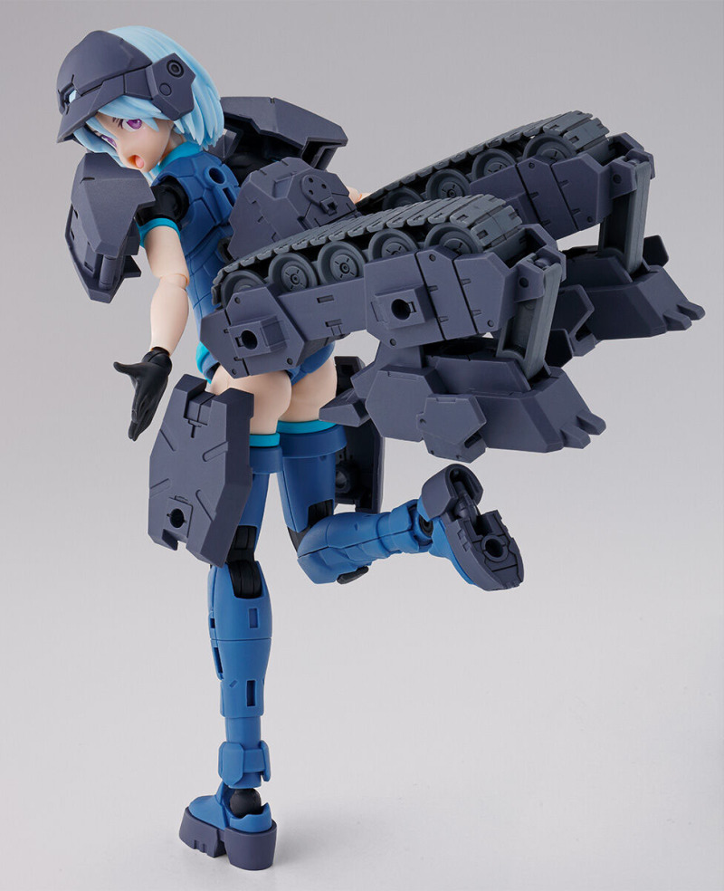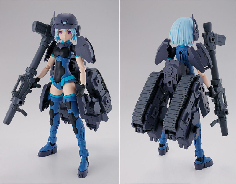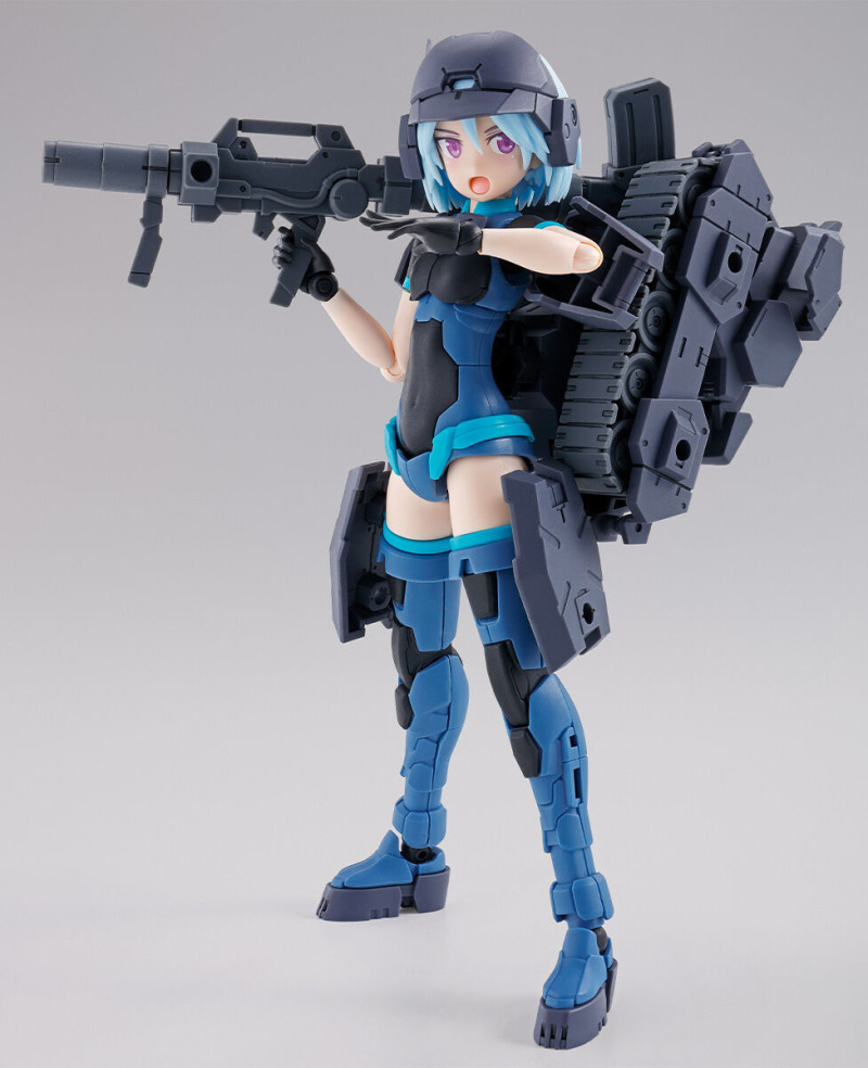 雖然依舊是熟悉的島田臉,不過這次「SIS-Ac65n 帕瓦蕾莉=帕利頓(重裝形態)」的裝備概念是由海老川兼武所設計,套件既有素體加上新規的頭盔、頭髮、胸甲、靴子...等零件構成,火箭筒、履帶等部分則是運用 30MM 系列機體「阿爾托(陸戰規格)」改色而來。擁有豐富的零件可再現未著裝的素體形態、全副武裝的重裝形態兩種造型,可展開履帶讓帕瓦蕾莉踏在上方,把玩出多種戰鬥姿勢。