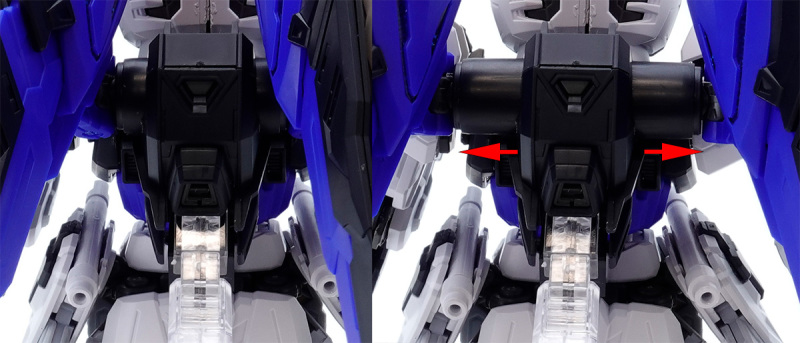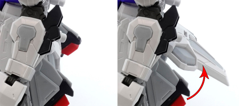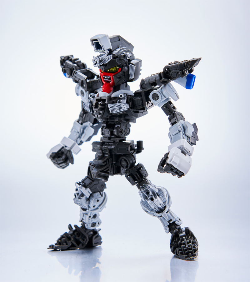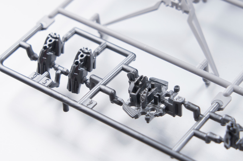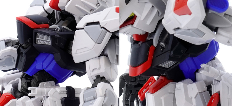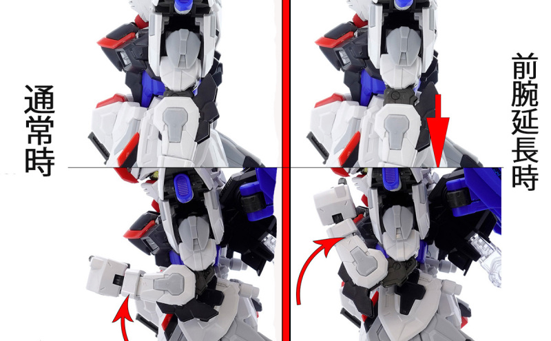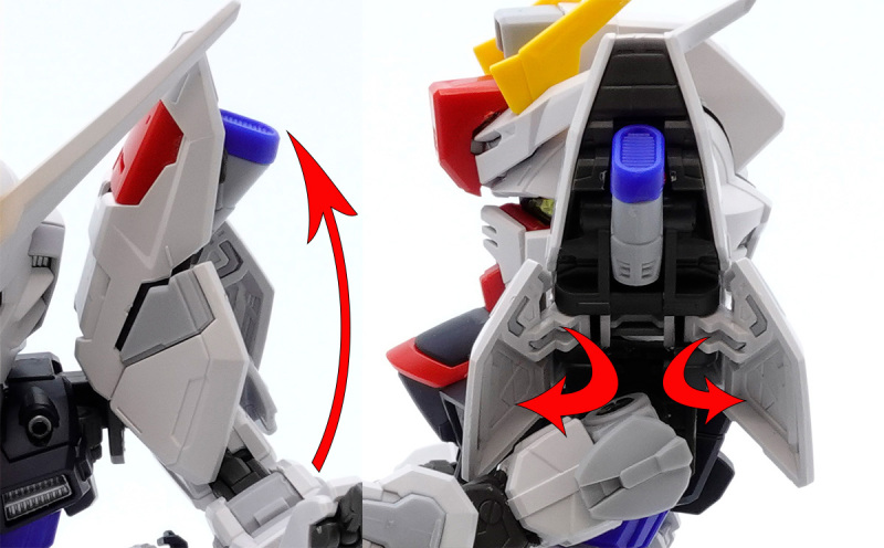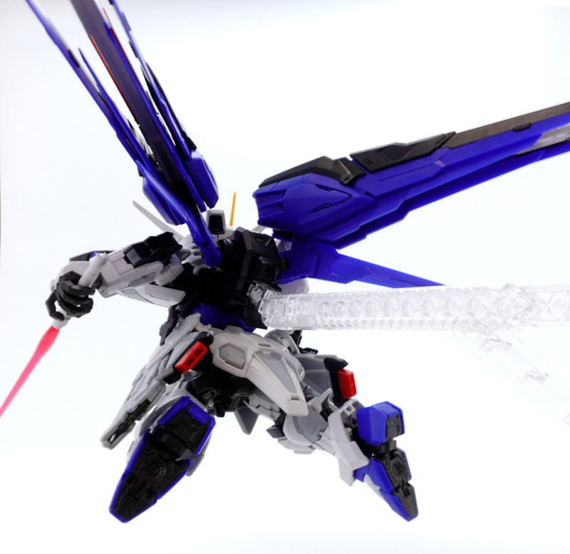 零件數量如此大量的原因,當然就是這款鋼普拉運用 MG 系列培育的技術,在 SD 比例下製作出造型精密且可動機構驚人的完整內部骨架,包含頭部、胸腹、四肢、背包皆有靈活的高可動範圍,更在肩甲、裙甲設計了活動式裝甲,手肘、大腿、翅膀、背包基部則有伸縮延長或連動機構,能夠克服 SD 比例下裝甲容易互相干涉、縮減可動範圍的通病,重現高跪姿、一齊射擊等魄力姿勢。