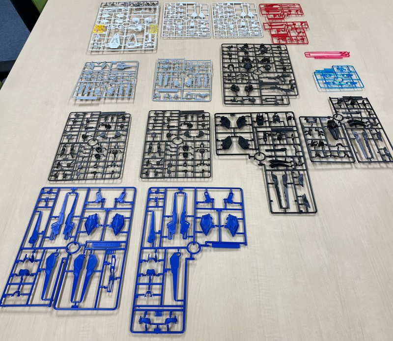 「MGSD 自由鋼彈」套件在完成後整體高度和 HG 1/144 比例相同約落在 11.5 公分,雖然是4頭身左右的比例但看看這零件的數量共有 16 個零件框,不僅分件分色完整、滿滿高精細度的細節表現,更是首度導入許多過去鋼普拉商品不曾運用的新技術,像是銀色零件採用的新技術「REAL METALLIC GLOSSINJECTION」使用新的成形材料製作更貼近金屬色澤,而「REFLECTION CUT」技術則是施以精密的蜂巢狀加工讓透明零件的反光效果更加提升。