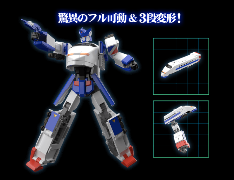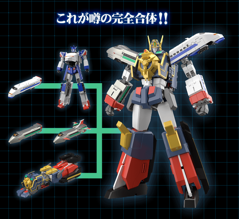 GSC「THE合體 特急勇者」完成品合體玩具,完整重現由幹線列車變形的超級AI機器人「凱因」與「勇者之翼」、「勇者機關車」三機體合體的特急勇者英姿!合體後尺寸全高約 26 公分,並保有靈活的可動,能賞玩各種充滿動態感的姿勢。附有普通狀態及必殺技狀態兩種的動輪劍、凱因神槍、勇者之翼用重視形狀尾翼、替換用手掌、勇者之翼用台座等豐富的配件。