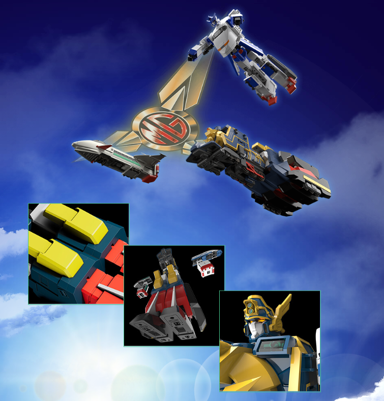 勇者之翼有車輛、噴射戰鬥機、合體右手臂的三種型態完全變形,並附有專用台座,能展示飛行狀態。