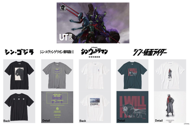 去年公布由導演庵野秀明的《新世紀福音戰士》、《正宗哥吉拉》、《新·超人力霸王》與《新·假面騎士》所組成的超級企劃「新·日本英雄宇宙」( Shin Japan Heros Universe )。近日宣布與日本平價服飾品牌「UNIQLO」展開合作,推出多款聯名 UT,預計將於 2023 年 3 月 6 日起在日本開賣。