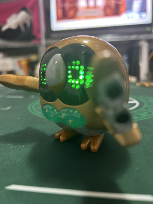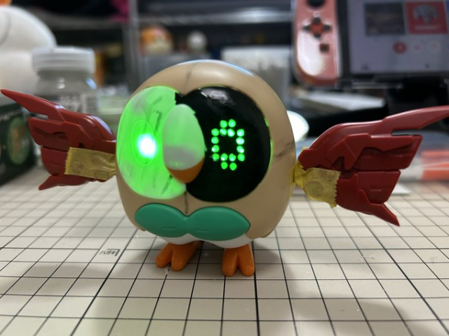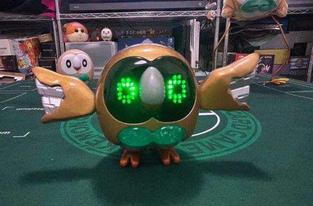 而推主ヤス就將未來悖謬寶可夢的元素加入到自己喜歡的寶可夢-木木梟上,不僅將其塗上了金屬色系塗裝,連面部採用挖空後在裏頭加上 LED 燈飾來呈現,展現出獨有的機械元素。