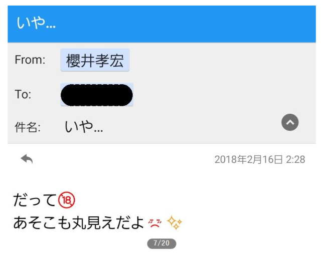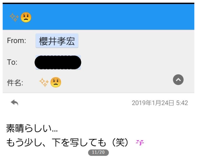 報導還指出,雖然在2009年時,當中B子也幾度懷疑,櫻井似乎與自己以外的女性有著交往關係,進而選擇與對方保持距離。雖然在6年後,B子與櫻井孝宏復合時,收到了他贈送的一枚戒指,但也從復合後,櫻井對於B子的態度開始不如以往,甚至還一度要求女方拍攝胸部、私密處、屁股等私密裸照的淫穢行為,這讓B子開始對自己自我懷疑,是否只是成為了櫻井的性慾發洩出口,導致B子因此陷入失眠、大量掉髮等現象,並且向心理醫師協助。