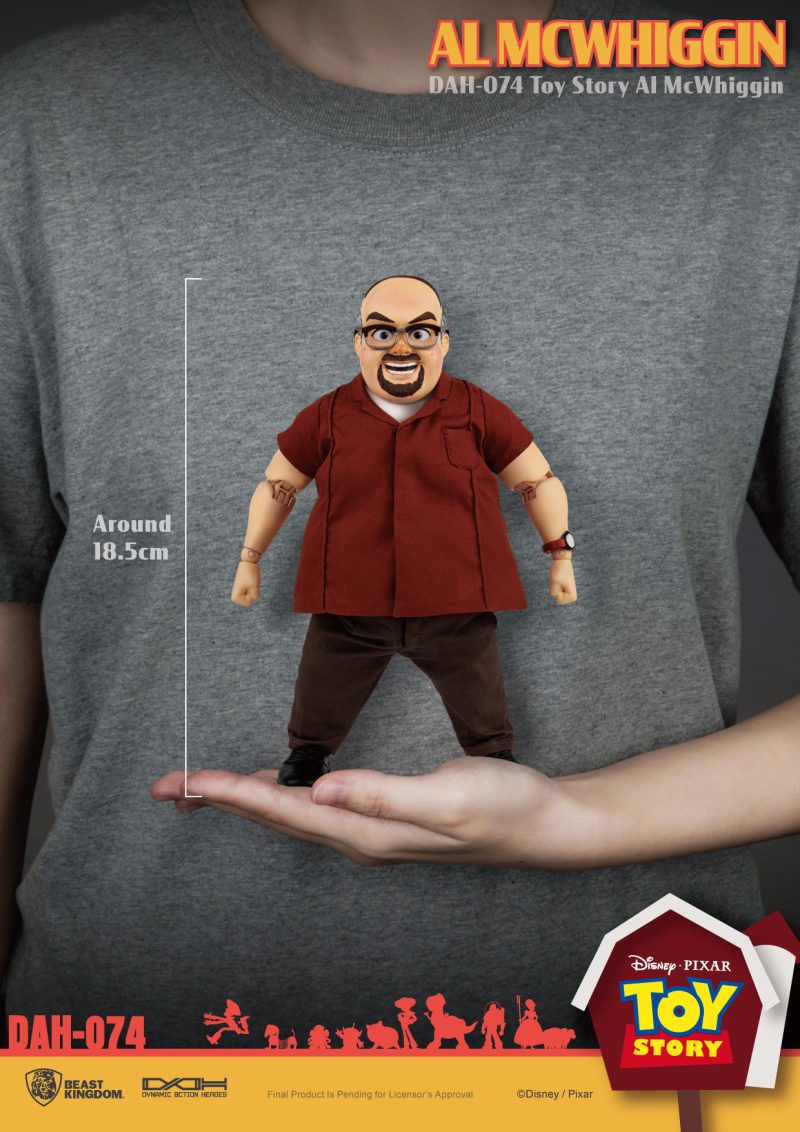 台灣玩具公司野獸國(Beast Kingdom)旗下的可動人偶系列「Dynamic 8action Heroes (DAH) 」於今(19)日發表了出自《玩具總動員2》的最新商品,接續「阿薛」、「安弟」之後的另一人類角色果然是你,中年胖大叔「艾爾」(Al McWhiggin)登場!