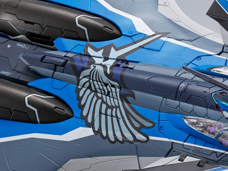 此次再度推出的「劇場版 VF-31AX 凱羅斯PLUS(疾風·因梅爾曼)」內容物基本與 2021 年底推出的初回限定版相同,但不包含限定特典台座。整體造型基於過去的 VF-31 凱羅斯系列機強化而來,採用新規零件製作前翼、頭部、腕部、武裝櫃等多處造型,其中最大的變化就是主翼從前掠翼改為後掠翼,機身圖樣的設計也大幅換新,印有疾風的個人標誌。