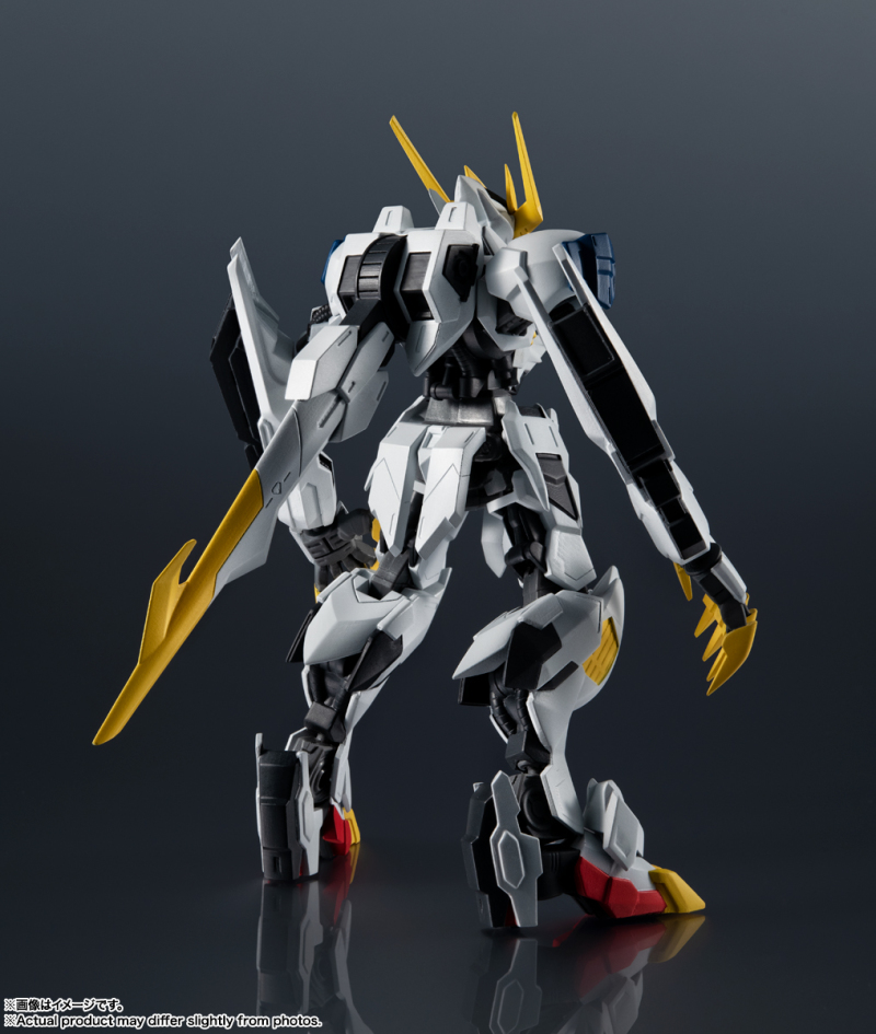 劇中主角三日月·奧古斯駕駛的獵魔鋼彈最終強化形態,透過 GUNDAM UNIVERSE 系列風格重新詮釋造型,賦予更具野性的造型,裝甲細節與層次也更加提升,能夠搭配內附的招牌武裝「超大型鎚矛」把玩。