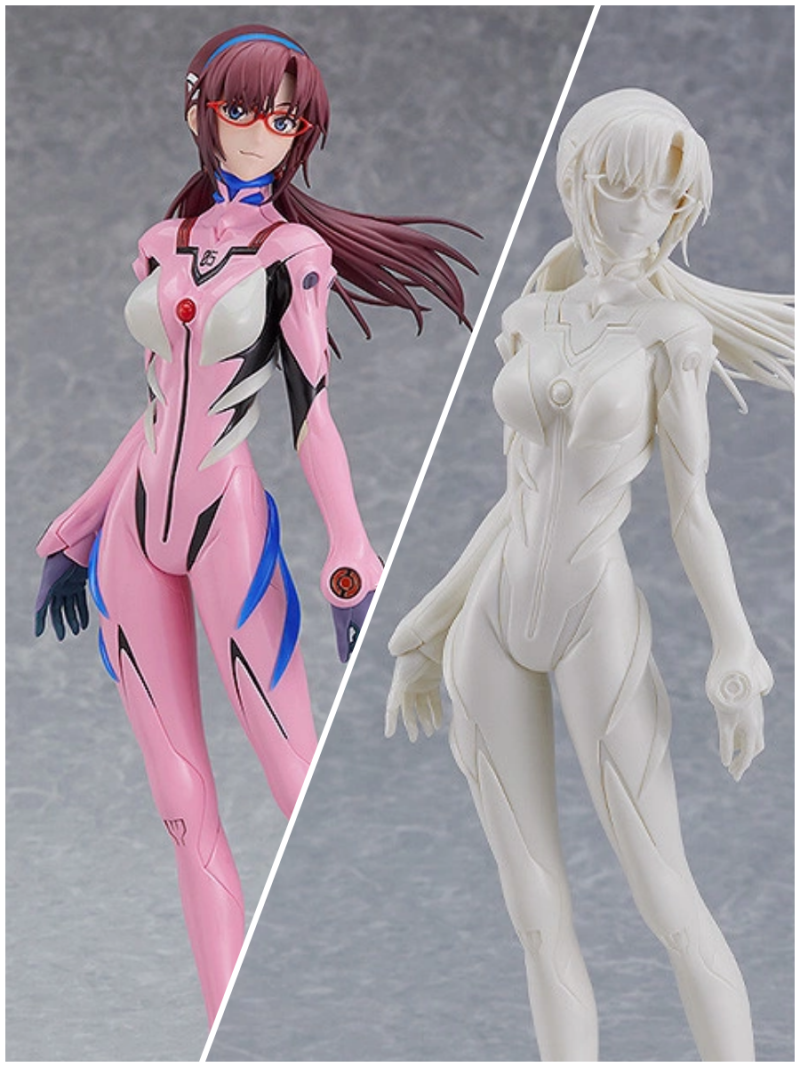 以 2011 年發售的 PVC 比例模型為原型,將個別零件透過 3D 掃描完全複製,化身為塑膠模型再度登場的「PLAMAX 真希波‧真理‧伊拉絲多莉亞斯」組裝模型,尺寸全高約 200mm,徹底還原穿著新型作戰服造型的真希波,飄逸的長髮與自信神態充滿魅力。採用施加轉印印刷的臉部零件與多色成型,就算是新手玩家也能輕易完成。