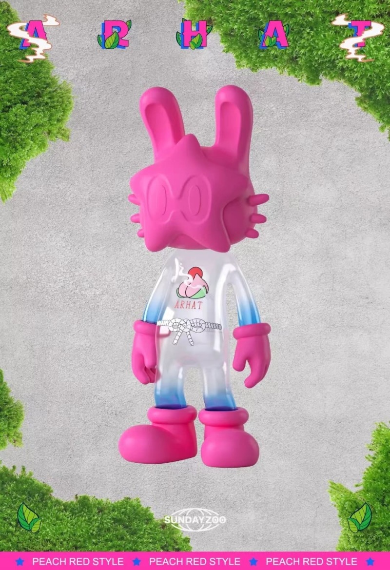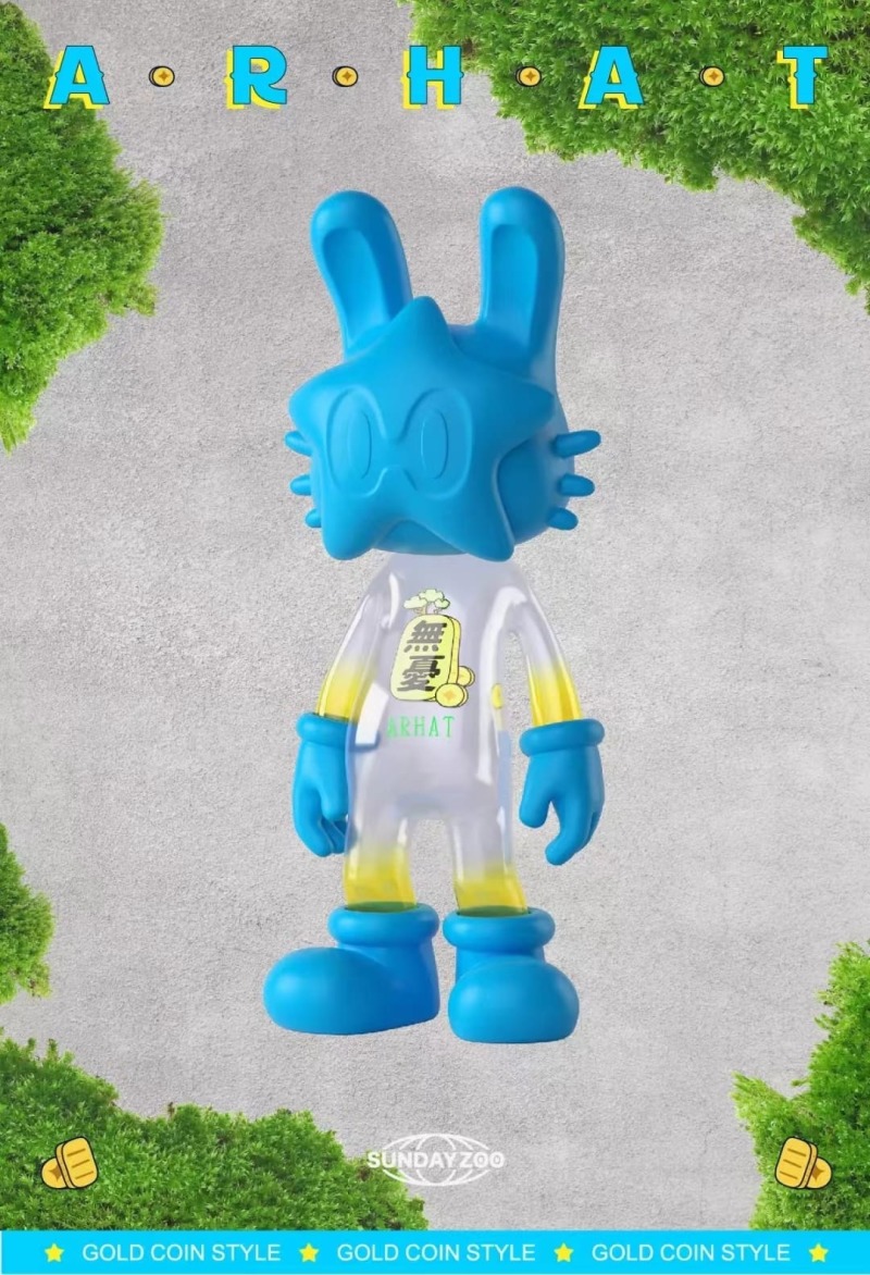 而Arhat阿羅漢是SUNDAY ZOO周日動物園藝術計劃裡的首發公仔潮玩的IP角色,以李璨琛自己的生肖兔年做為靈感基礎,清澈透明的身軀表達阿羅漢無一切煩惱,透明中鑲釀的主題將變化無窮,使人能一眼看透內心且無保留,提倡人與人應用內心交流,且像Arhat一樣“不苦不樂,舍心,住正念正智”。