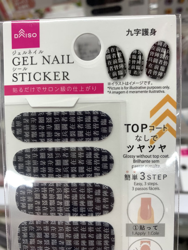 如果對指甲美容有興趣的電電夥伴,應該對「指甲貼」並不陌生,方便又多種選擇的貼紙可以讓指甲更具魅力,近年來也不少人愛用。不過最近日本推特上出現了一個熱議商品,是生活店鋪大創所販售的「九字護身指甲貼」,以漆黑的底色搭配滿版文字,讓不少網友好奇大創哪來的創意,也有不少網友表示喜愛想購入。