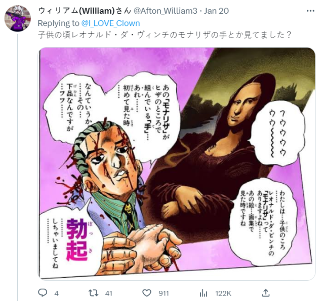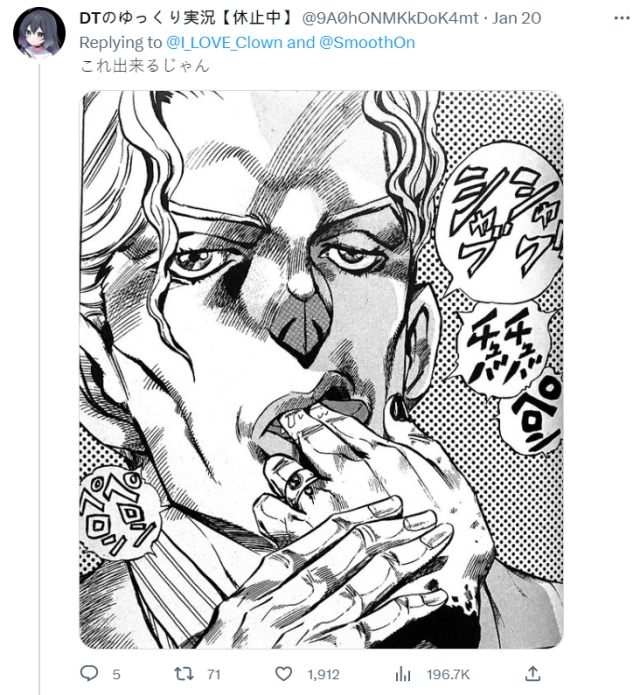 當然講到手,就不得不提《JOJO的奇幻冒險》的吉良吉影了,不少網友開玩笑說他應該是本人無誤 XD,而推主自己也表示很樂意接受這個稱呼,他也很愛這個角色。