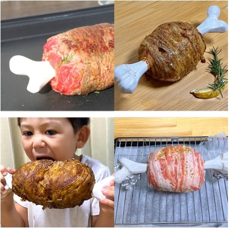 和陶鍋同樣的材質,讓這個骨頭可以輕鬆兼負進烤箱的任務,只要你在上面做一點加工,那就可以完成「真正的漫畫肉」來享受美食啦!