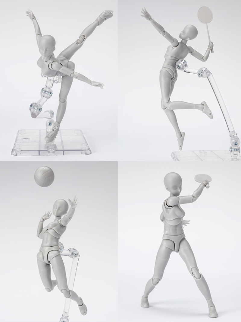 運用 S.H.Figuarts 系列多年來所累積的技術與經驗,不斷地改良與精進的「素體醬-運動-Edition DX SET(Gray Color Ver.)」可動人偶,整體採用單純的灰色素色,並具備有超過 30 個可動關節,能夠賞玩各種生動精彩的動作。在本次以運動為主題的豪華運動套組中,收錄有的各 8 種的左右替換手勢零件,並有花式滑冰,羽毛球,排球,桌球(乒乓球)四種運動項目的配件,包含有溜冰鞋、各種球和球拍等,搭配支架能和說明書,能讓有臨摹需求的玩家們更好擺飾動作。