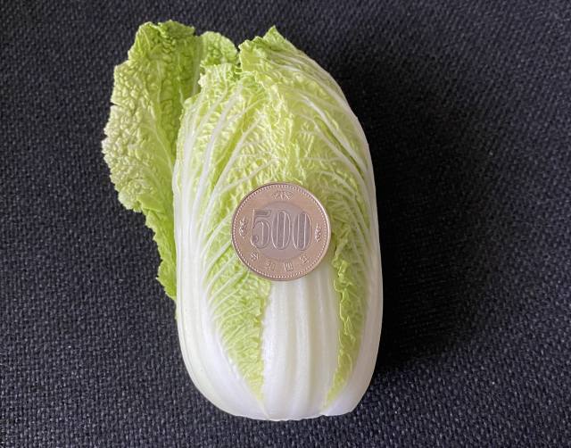 這種叫做「無雙」的白菜,理論上平均重量可以達到2.5公斤,和推主刻意栽培的「迷你版本」一比,簡直就是巨無霸了。