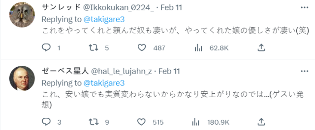 雖然聽到這樣的要求很詭異,但風俗娘本人表示其實感到很有趣,能替對方完成夢想也感到很欣慰,只是有點驚訝而已 www。