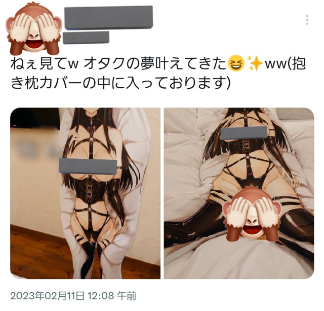 「動漫人物抱枕」雖然對於多數喜歡角色的粉絲來說,並非必須之收藏,但是也大有喜愛的人們,能讓角色像是伴侶般陪伴一起睡覺,也很溫馨。最近日本推特上出現一個奇聞,有風俗娘表示,接客的時候遇到身為動漫宅的消費者,居然要求「塞進動漫人物抱枕裡」服務,當然秉持服務精神,幫對方完成跟喜歡角色做的美夢,引起推特網友熱議。