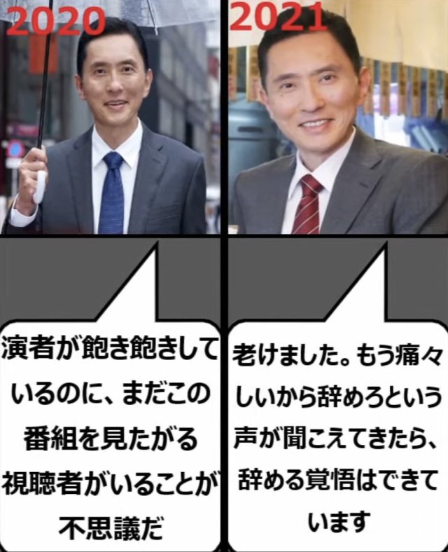 2021:老了。如果有人認為我的年紀已經不適合厚臉皮演這個角色的話,我有立刻辭演的覺悟。