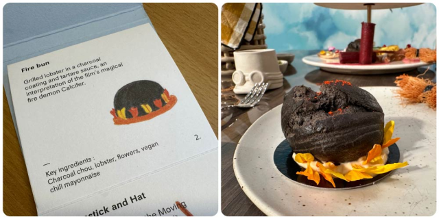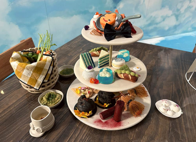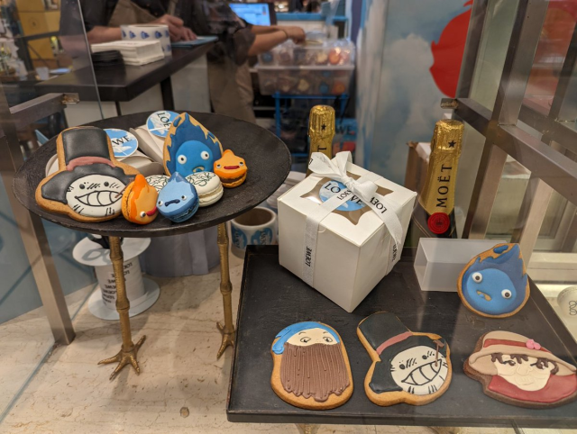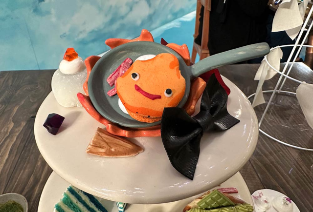 這是與英國下午茶店鋪 Calcifer's Kitchen 合作的咖啡廳,將下午茶餐點融合作品特色製作出美味且亮眼的樣貌。店內直接擺設了《霍爾的移動城堡》動畫的牆面外,更有許多場景設計直接讓人感受到聯名咖啡廳的不凡之處,更有聯名服飾商品展示在周圍。