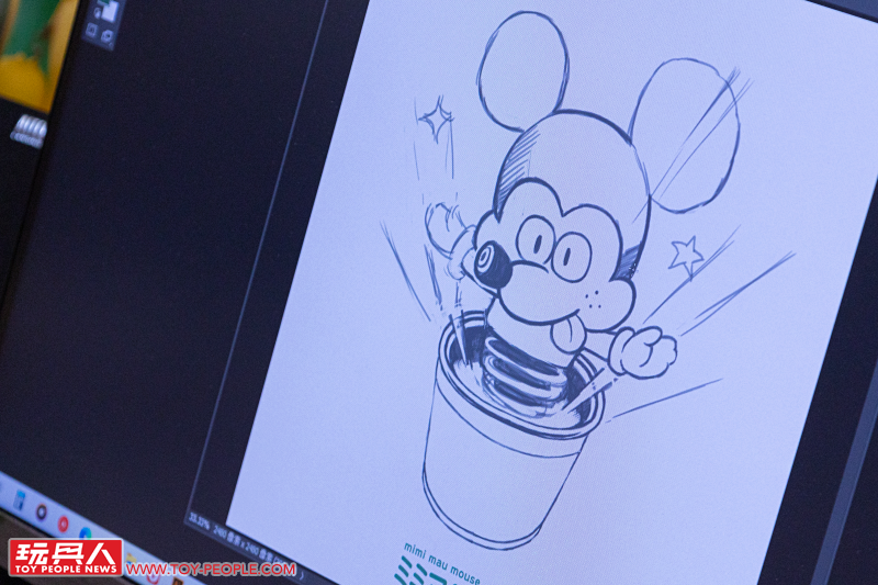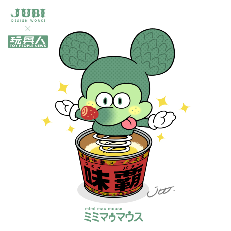 JUBI:原本的構想是一個被霸凌毆打後的米奇(打到鞋子都掉的那種...),想到 "米米冒冒" 後面剛好可以接上 Mouse,所以才有了 Mimi Mau Mouse 這個名字。