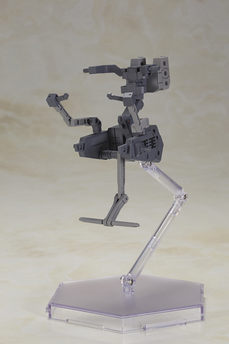 「動力裝甲組件」具備連結機甲少女本體的駕駛座、操縱桿等構造,以及能裝上骨裝機兵四肢的可動軸,能將另售的機甲少女本體、骨裝機兵本體進行結合,同時兼具美少女化前後的兩種造型,組成少女操縱動力裝甲的新玩法,同時動力裝甲組件也設有多數的 3mm 連接孔、內附數個連接零件,能夠搭配壽屋推出的 M.S.G 等組裝模型擴充武裝。